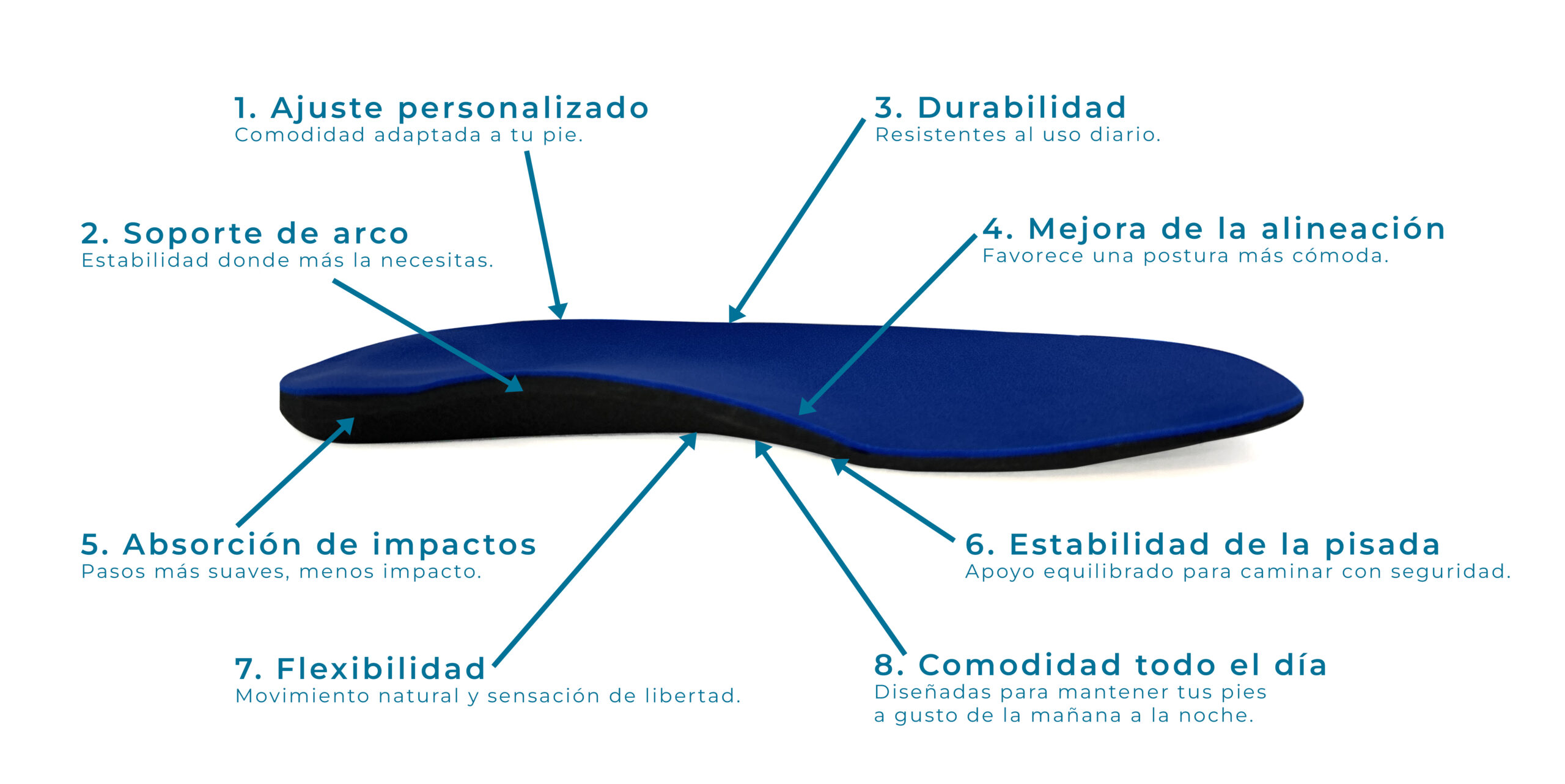 Tus plantillas se fabrican con materiales técnicos de alta resistencia, perfectamente ajustados a tus necesidades diarias, tu calzado habitual y tu estilo de vida activo.